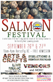 | The Horsefly River Salmon Festival will be located at the campground along the river in Horsefly. After Clark's General Store, turn right onto the bridge, where there will then be directions where to park. |